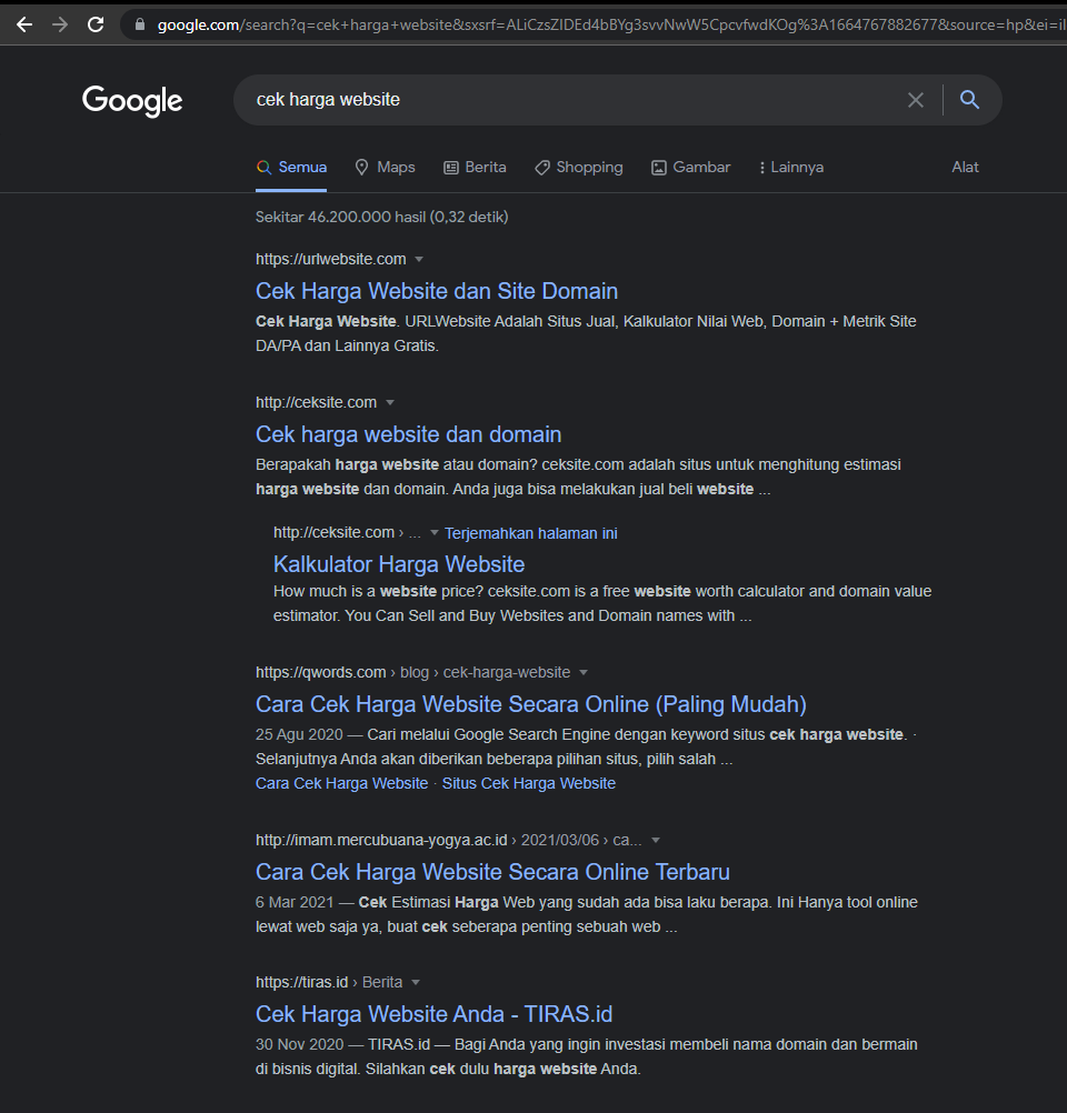 Sekarang, kalian cukup hanya menunggu website menampilkan harga situs kalian.
