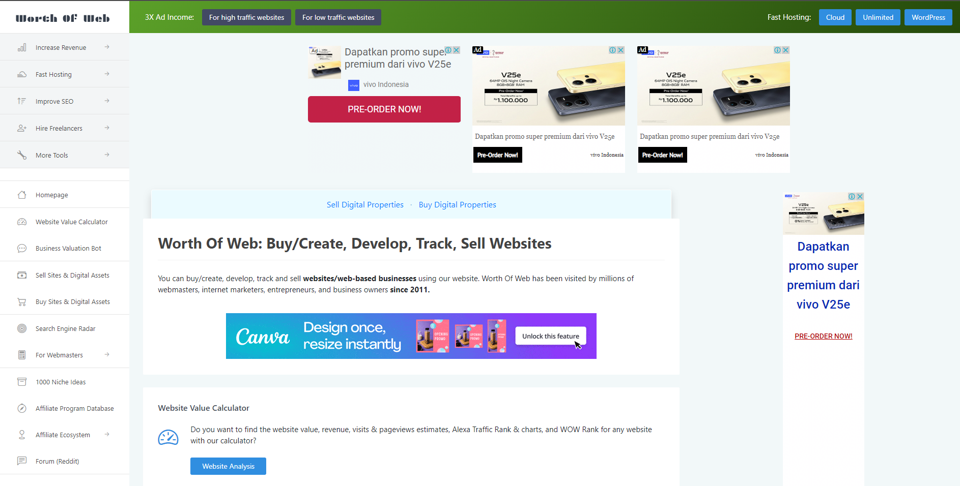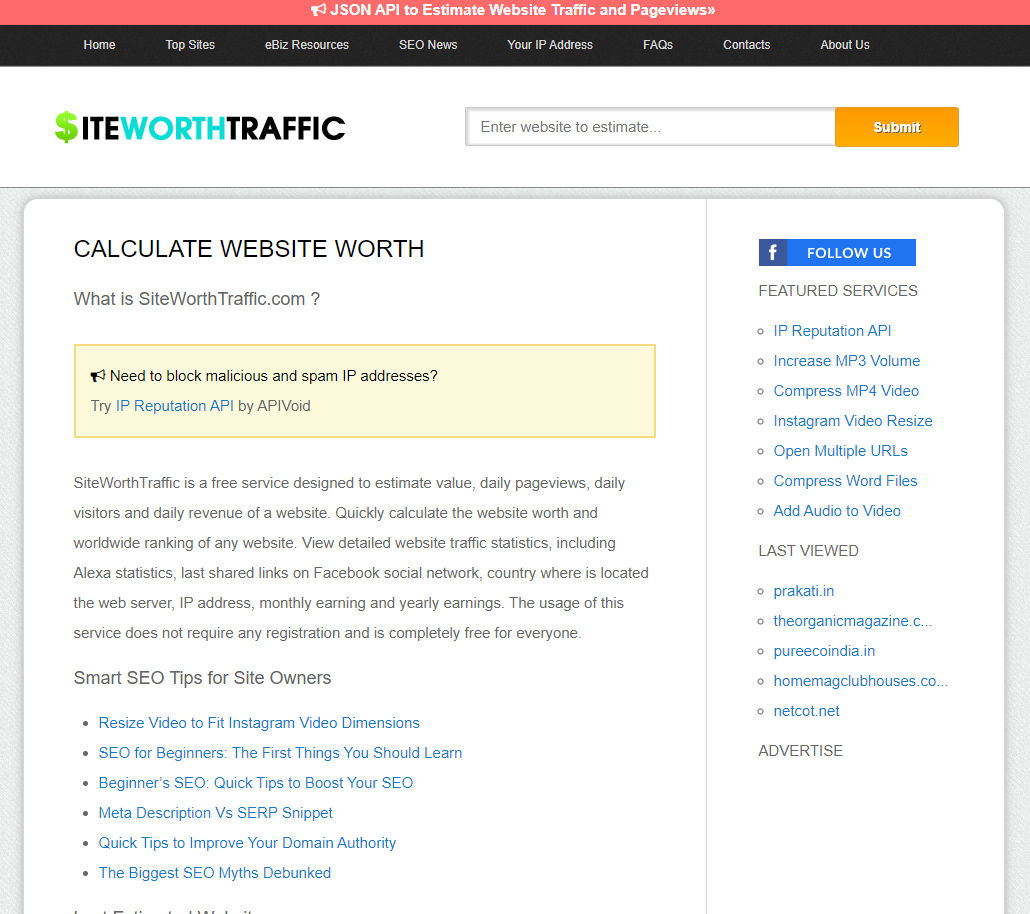 Worthofweb.com hanya butuh waktu sebentar untuk mengecek harga website. Uniknya, situs ini juga memberikan tips dan trik agar pemilik website dapat meningkatkan harga situsnya.